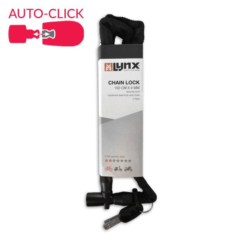 Het is een comfortabel slot, makkelijk en soepel te hanteren (en mee te nemen!), vanwege de slechts 362 gram aan gewicht en de handige lengte van 100 centimeter. Ook goed te gebruiken voor een kinderfiets. Het kettingslot met extra sleutel is eenvoudig om een vast voorwerp heen te slaan en evenzo handig te sluiten: dankzij het auto-clicksysteem. Dit auto-clicksysteem zorgt ervoor dat het slot makkelijk en gebruiksvriendelijk te gebruiken is. Het slot is zonder sleutel met één hand vast te klikken. Voor het vergrendelen van het slot heeft u echter wel een sleutel nodig.