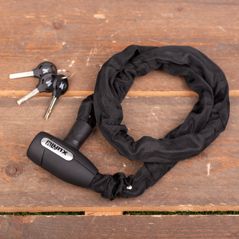 Voor een zeer scherpe prijs heeft u een handig kettingslot van het budgetmerk Lynx, onderdeel van de serie Cityline M.