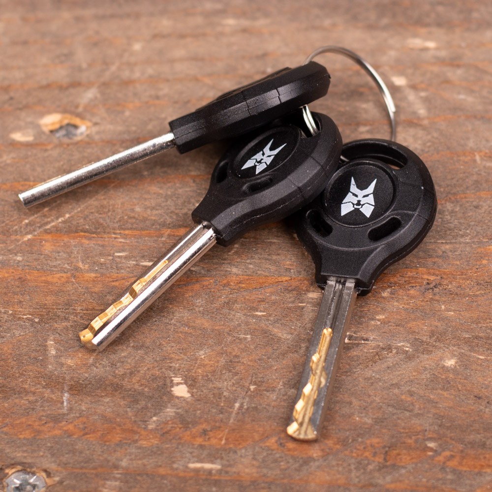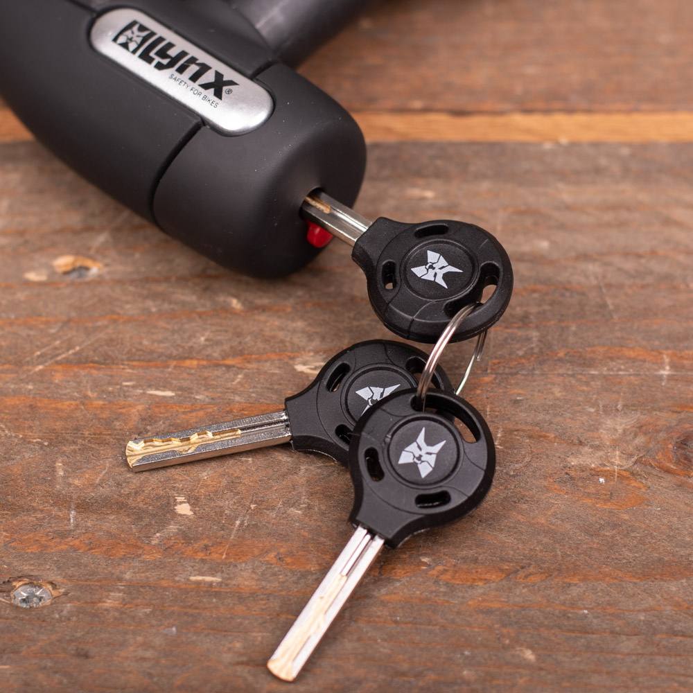Bij dit Lynx kettingslot horen drie sleutels, dus u heeft altijd reserve. De sleutels zijn van stevige kwaliteit, zodat afbreken niet snel zal voorkomen. Verder is het slothuis mooi afgewerkt in degelijk en krasbestendig kunststof.