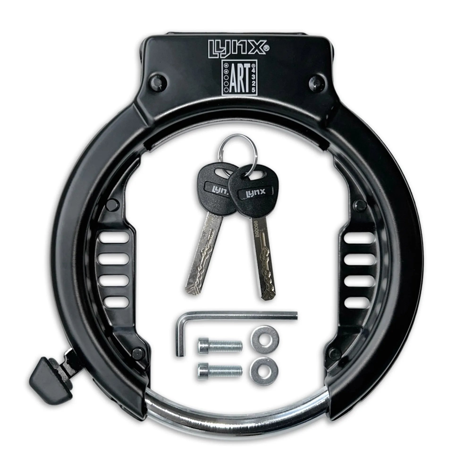 Een ringslot is het basistype fietsslot dat bijna iedere Nederlander gebruikt. Dit zwarte ringslot XL OEM van het merk Lynx is een eersteklas frameslot met plug-in functie. Het brede ringslot kan gecombineerd worden met een insteekketting voor extra veiligheid. Het slot heeft het ART-2 keurmerk toegekend gekregen.
