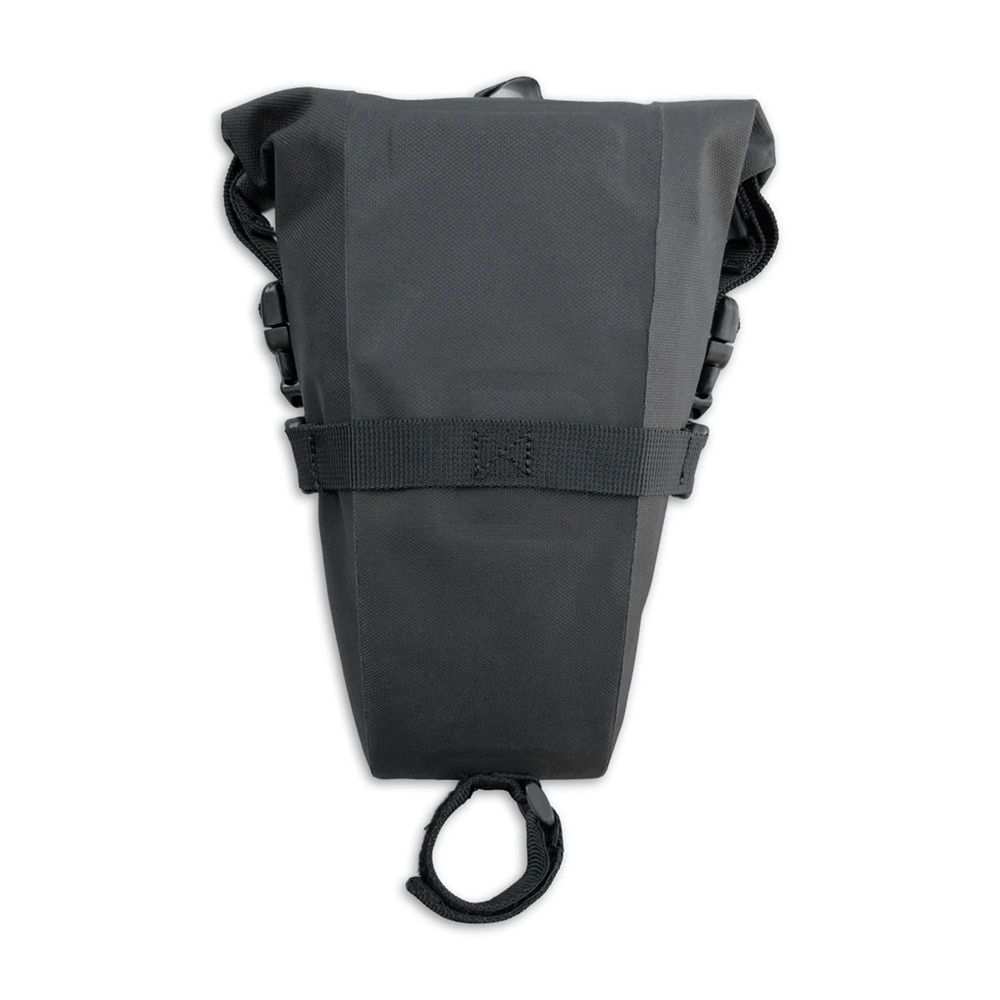 De lichtgewicht zadeltas heeft een waterbestendige rolsluiting met klittenband, die wordt vastgezet met twee klikgespen. Hoe minder bagage, hoe compacter u de tas dicht kunt rollen. De onderkant en zijkanten van de tas zijn verstevigd.