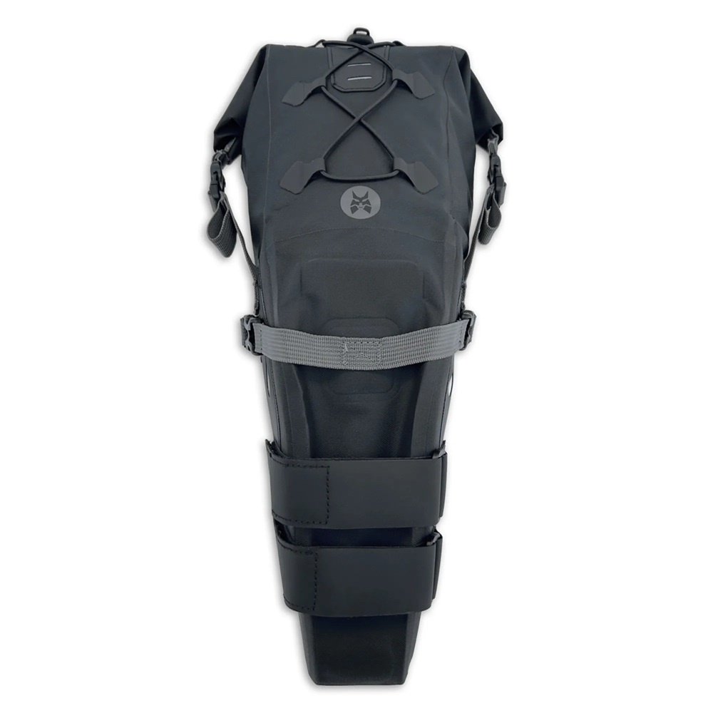 De zadeltas XL Wildtrack van het merk Lynx heeft een inhoud van ca. 10 liter. De zwarte zadeltas is gemaakt van waterdicht, slijtvast materiaal en wordt met klittenband bevestigd onder het zadel. Een ideale fietstas voor meerdaagse bikepackingtochten met een mountainbike, gravelbike of racefiets!
