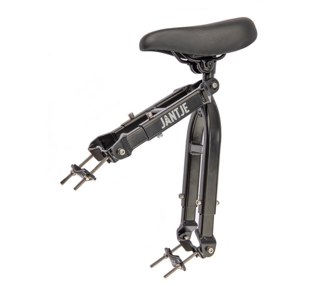Dit extra zadel met voetsteunen is geschikt als voorzitje voor (wat grotere) kinderen. Het stoere zitje is verstelbaar en universeel; het past op vrijwel elke damesfiets. Een handig alternatief voor een fietsstoeltje, voor gezellige uitjes op de fiets met uw kind!