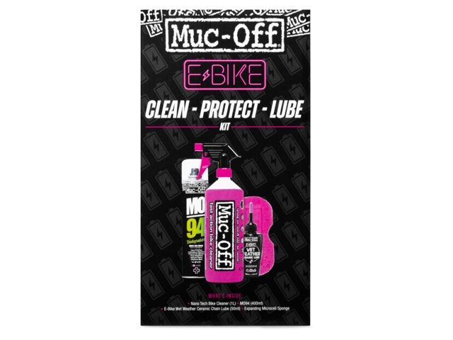 De set bestaat uit 1x Nano Tech Bike Cleaner, 1x Expanding Microcell Sponge, 1x e-bike Wet Weather Chain Lube, 1x MO-94 Bike Spray tegen roest en corrosie.