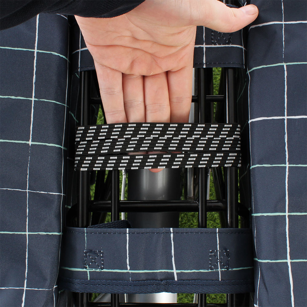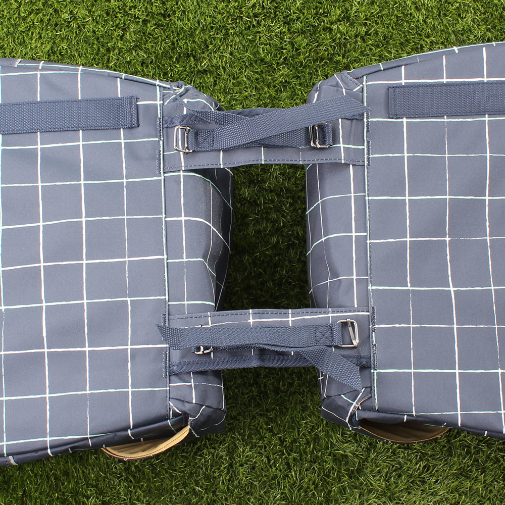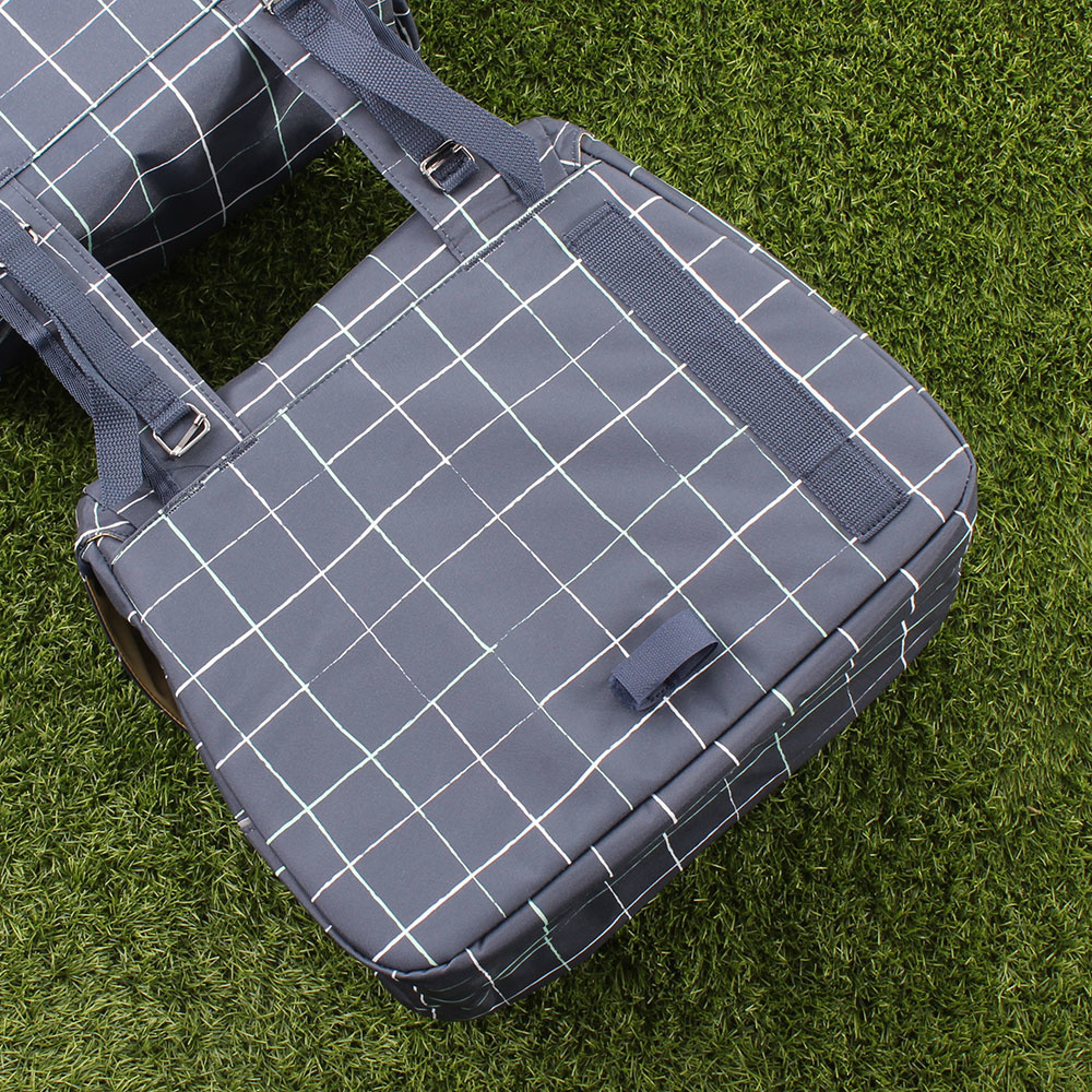 Deze Joli heeft licht gebogen vormen en dat valt haast onbewust op, maar geeft wel het gevoel een bijzondere fietstas in bezit te hebben. De witte lijnen van de ruiten op een blauwe achtergrond passen in het plaatje van een strakke dubbele fietstas die net weer even anders is dan de rest.