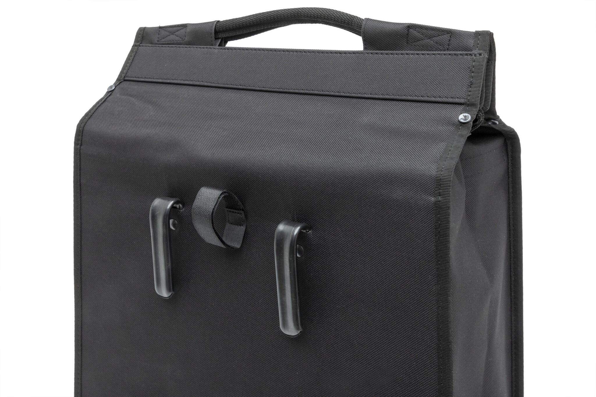 Deze enkele fietstas (pakaftas) van New Looxs is gemaakt van polyester, is waterdicht en heeft een inhoud van 24 liter. Tevens kunt u deze fietstas gebruiken als handige boodschappentas (shopper). De New Looxs Daily Shopper heeft een inhoud van 24 liter en is vanwege de vorm erg geschikt om bijvoorbeeld flessen drinken mee te nemen. De Daily Shopper is een stevige, verhoogde boodschappentas die beschikt over een handig ruim voorvak. Uitgevoerd in de kleur zwart.