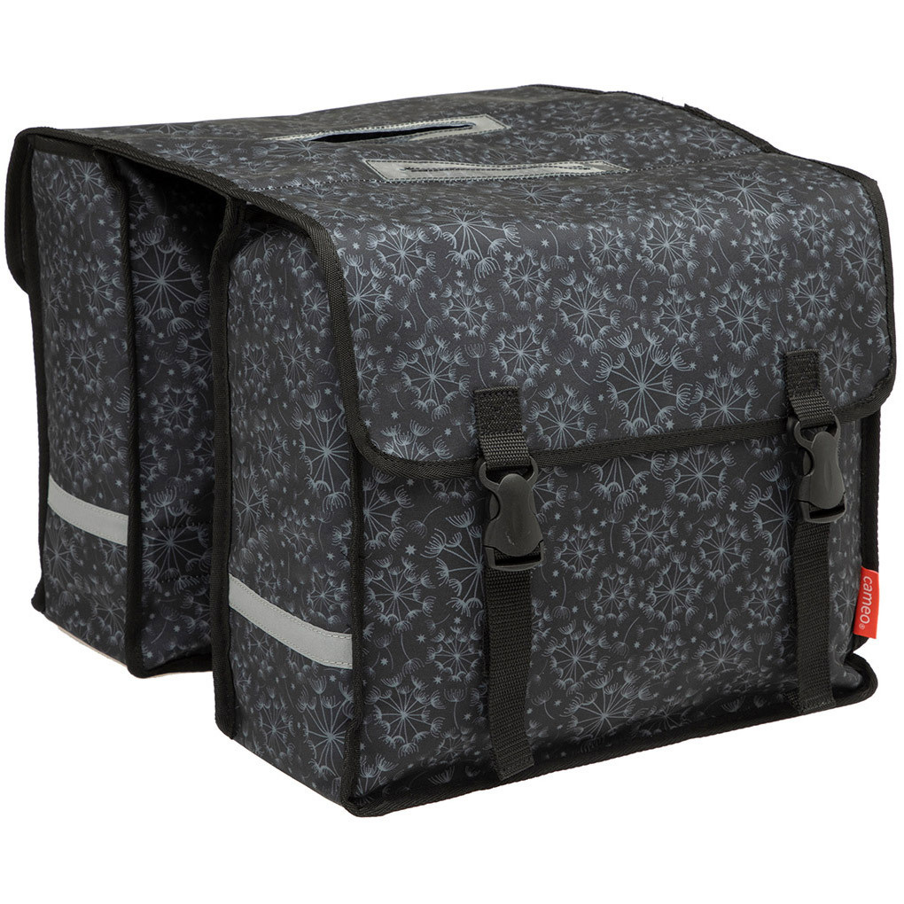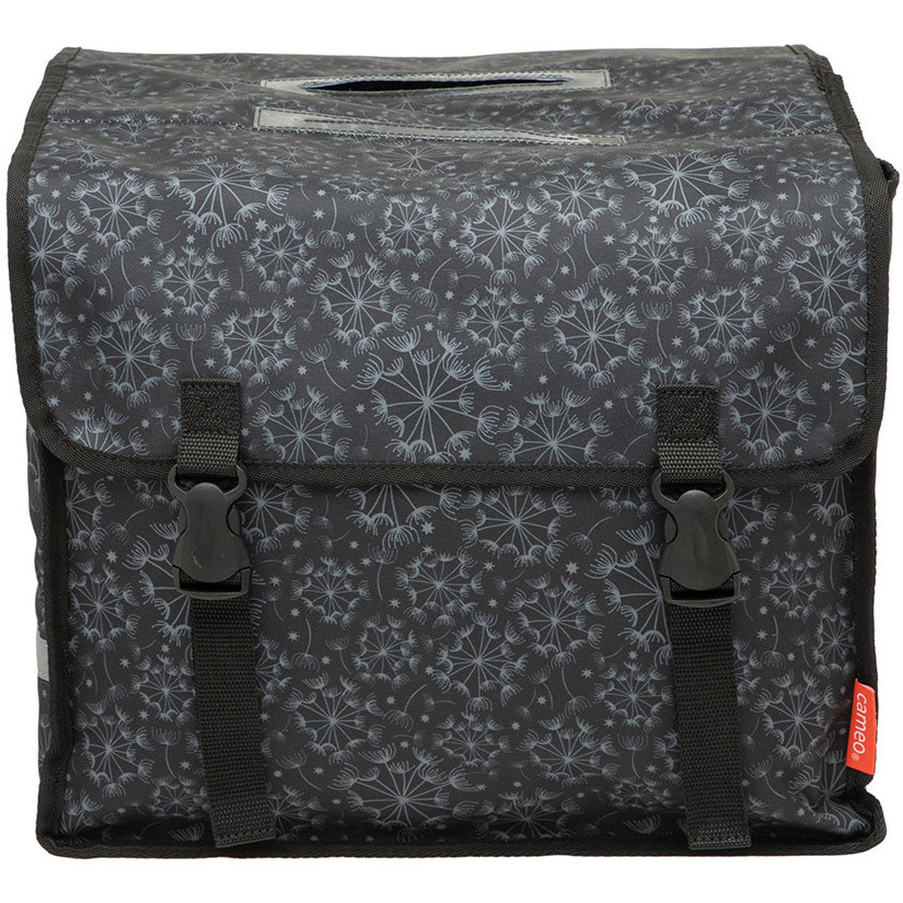 De Cameo Tara van New Looxs is een zeer betaalbare dubbele fietstas met een inhoud van 30 liter. De zwarte fietstas heeft een elegante bloemenprint en wordt eenvoudig met riempjes bevestigd aan de drager van uw fiets.