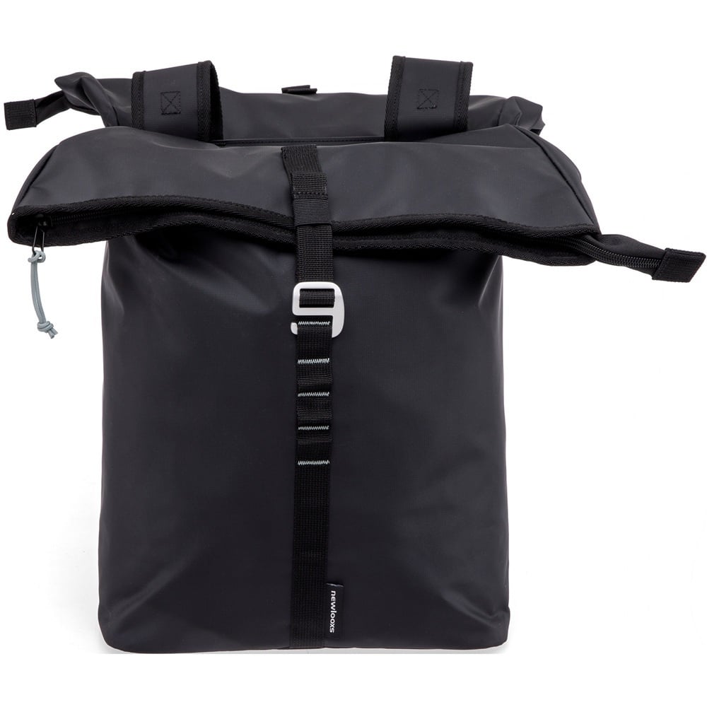 De tas is gemaakt van waterafstotend bisonyl en heeft een waterproof vouwsluiting, waardoor deze bestand is tegen een kleine regenbui. Door de gestikte naden is de tas echter niet 100% waterdicht. Om de tas volledig waterdicht te maken, kunt u de New Looxs-regenhoes voor dubbele fietstassen erbij bestellen.