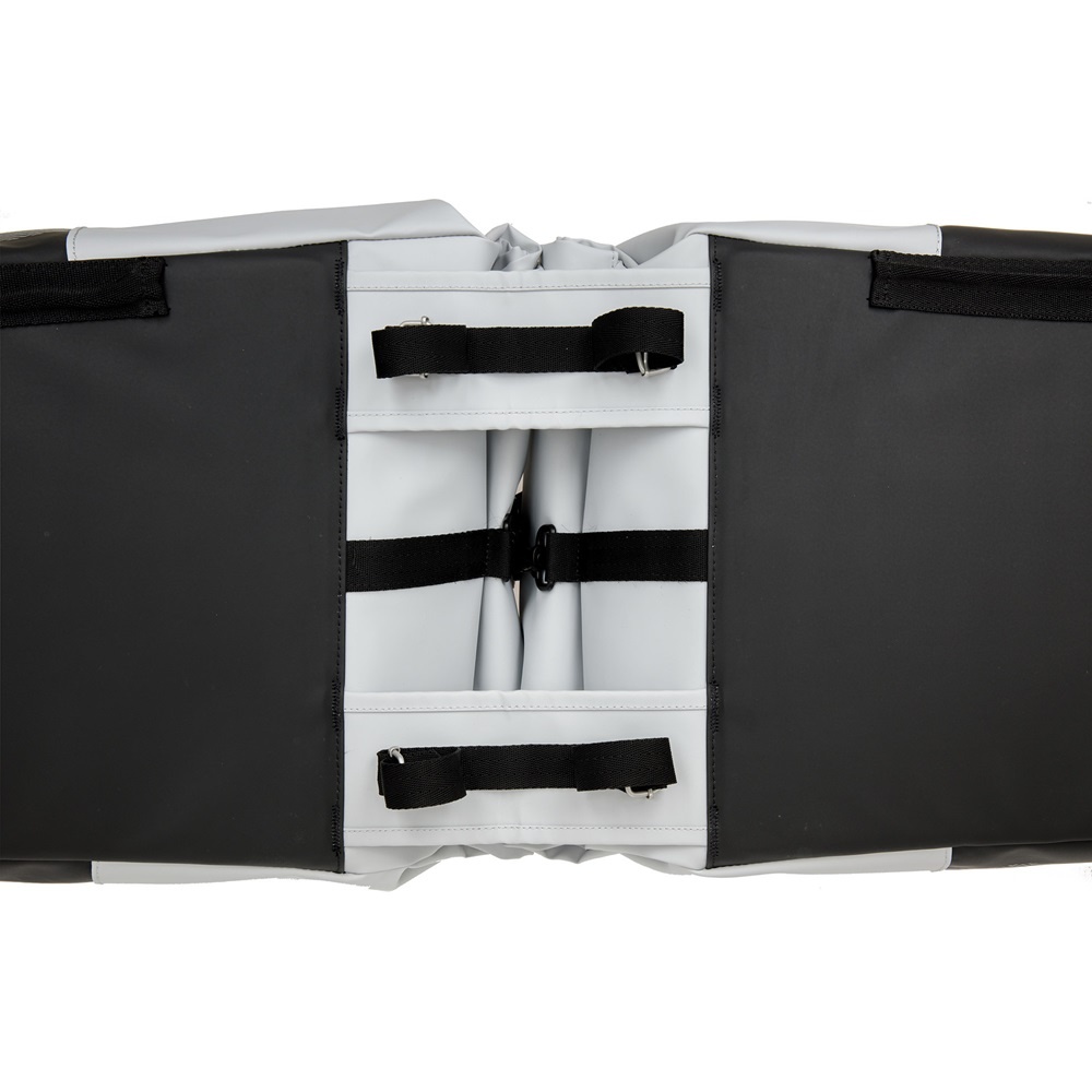 Deze fietstas bevestigt u eenvoudig aan uw bagagedrager met de twee verstelbare riempjes en klittenband. Met het klittenband aan de onderkant van de tas zorgt u voor extra stabiliteit aan de fiets. De open bovenkant tussen de twee tassen in zorgt ervoor dat de snelbinders bereikbaar blijven.