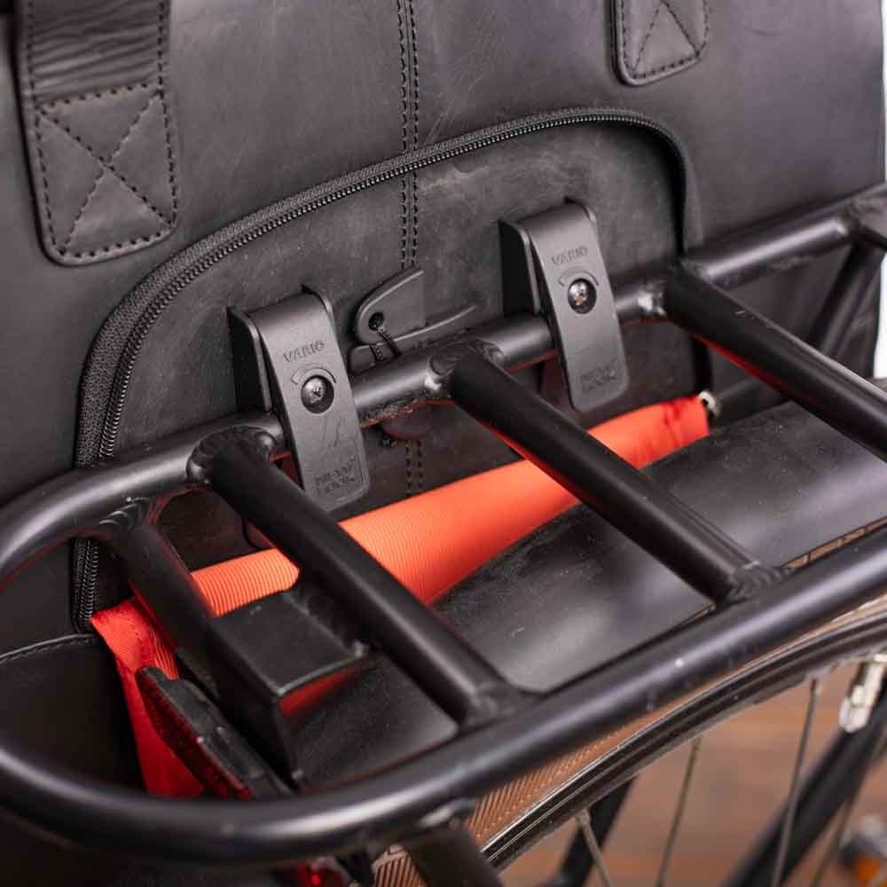 U bevestigt de tas zeer eenvoudig aan uw bagagedrager met twee verstelbare Rixen & Kaul Vario-haken. Deze haken kunt u netjes wegwerken achter een klep met ritssluiting wanneer u de tas van de fiets afhaalt. De haken zijn geschikt voor buisdiameters van 6 tot 16 millimeter en passen zowel op stadsfietsen als elektrische fietsen.