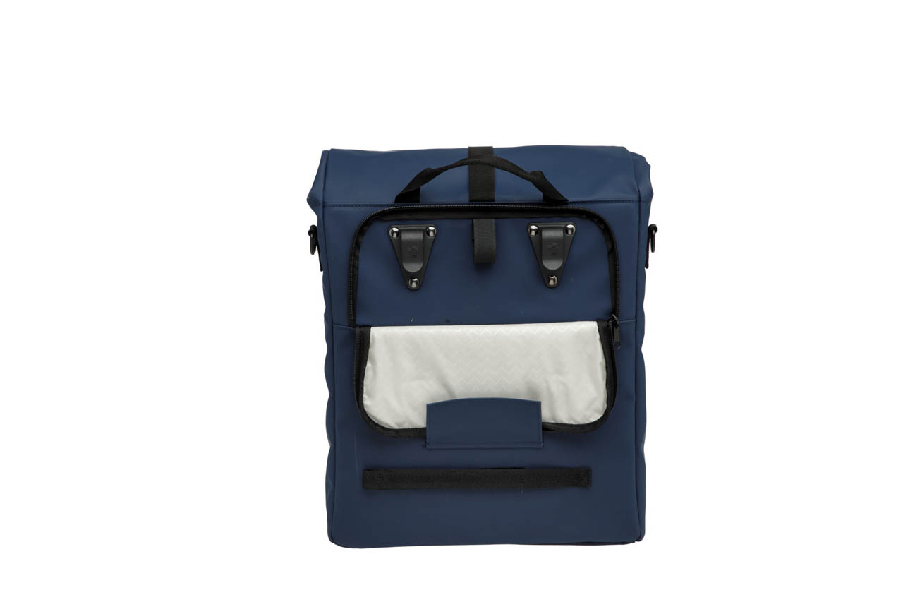 Een stoere, praktische en extra stevige enkele fietstas en schoudertas - ook voor op de e-bike! Dat is deze donkerblauwe single fietstas uit de lijn 'Odense' van New Looxs. De Odense Single heeft een mooie mix van praktische eigenschappen en een stoer, stads uiterlijk (urban). Inhoud: 17,5 liter. Ideaal voor woon-werkverkeer en woon-schoolverkeer. Op de gewone fiets of op de elektrische fiets!