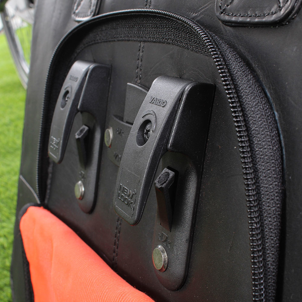 U bevestigt deze tas aan uw bagagedrager met twee verstelbare haken. De haken kunt u wegwerken achter een ritsvak als u de tas van de fiets afhaalt.