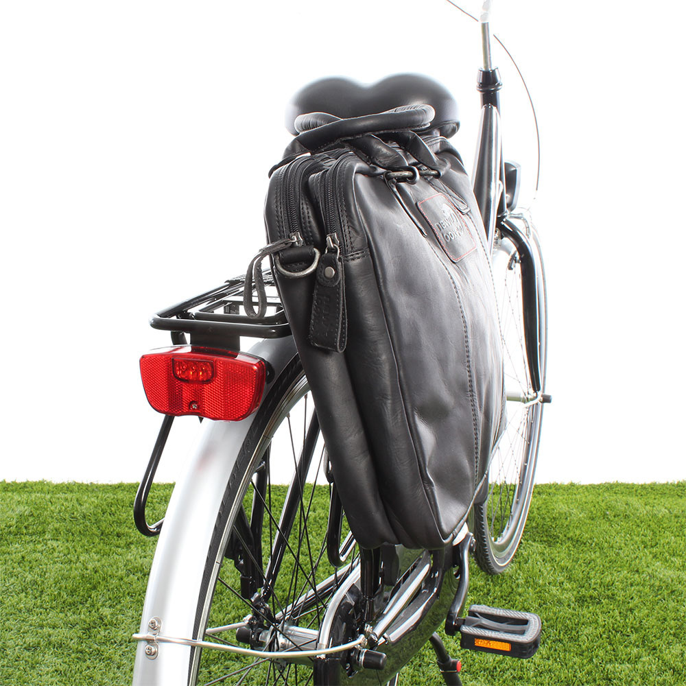 Deze luxe fietstas draagt u makkelijk met u mee aan de stevige hengsels en wordt geleverd met een afneembare en verstelbare schouderband. Door deze band aan de tas te bevestigen, draagt u de tas ook handig met u mee als schoudertas.