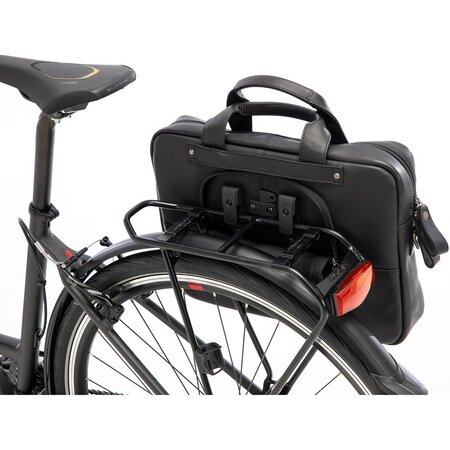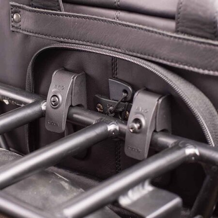U bevestigt de tas aan uw bagagedrager met twee verstelbare Rixen & Kaul Vario-haken. Deze haken kunt u netjes wegwerken achter een klep met ritssluiting wanneer u de tas van de fiets afhaalt. De haken zijn geschikt voor buisdiameters van 6 tot 16 millimeter en passen zowel op stadsfietsen als elektrische fietsen. Dankzij de vergrendeling tussen de twee haken in, kan de tas niet zomaar van de bagagedrager gepakt worden.
