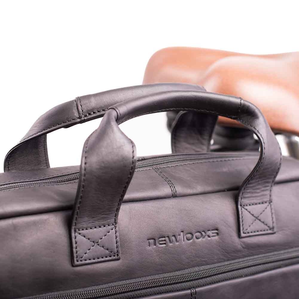 De stijlvolle lederen fietstas en kantoortas Luko van New Looxs is mooi afgewerkt en heeft een inhoud van 10 liter. De tas is uitgerust met een laptopvak, een uitneembare tablethoes, veel opbergvakken en een schouderriem. Een tijdloze fietstas voor woon-werkverkeer, waar u lang plezier van zult hebben!