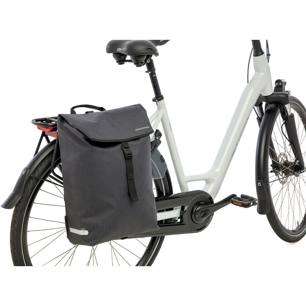 Met de New Looxs-bevestigingshaken bevestigt u de Hamar Backpack eenvoudig aan de bagagedrager. De gebogen, kunststof bevestigingshaken zijn niet verstelbaar, maar passen op vrijwel elke bagagedrager, ook van een elektrische fiets. Bovendien is er een strook klittenband voor extra stabiele bevestiging aan de bagagedrager. Wanneer u te voet verder gaat, draagt u de tas gemakkelijk met u mee als rugtas. En tijdens de fietstocht kunnen de verstelbare, gevoerde schouderbanden worden opgeborgen in een elastisch vak achterop, zodat de banden niet tussen de spaken kunnen komen.
