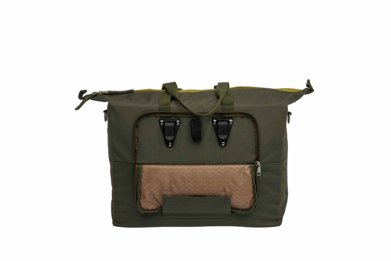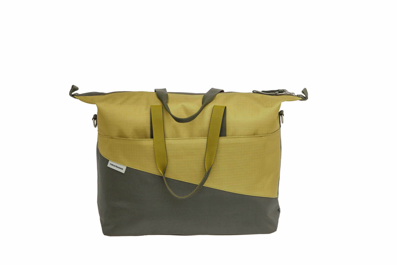 Deze stijlvolle enkele fietstas en schoudertas Oslo Tendo van het merk New Looxs heeft een inhoud van 21 liter. De tas is uitgevoerd in de frisse kleurcombinatie olijfgroen en geel. De Tendo is uitgerust met een afneembare schouderband, een laptopvak, regenhoes en reflectie.