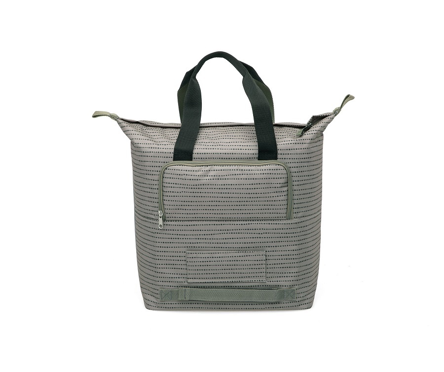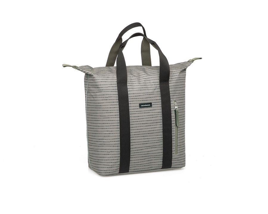 Deze praktische fietstas Kota van New Looxs biedt met 24 liter inhoud genoeg ruimte voor uw boodschappen. De grijze fietstas met een hippe zwarte stippenprint heeft een ruim hoofdvak, twee ritsvakken en reflectie.