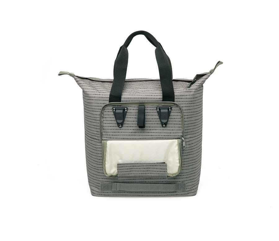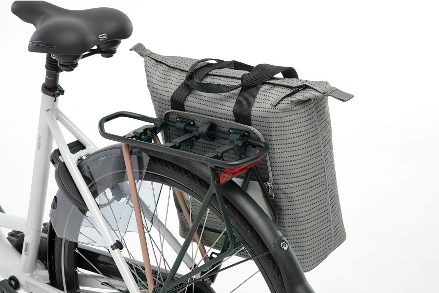 U kunt de tas aan uw fiets bevestigen met haken en klittenband. De haken zijn gebogen en niet verstelbaar. De fietstas is ook geschikt voor uw e-bike als de bagagedrager ervan ruimte biedt voor deze haken. Als u met de tas te voet verder gaat, kunt u de haken verbergen achter een flap met ritssluiting. Dankzij de brede nylon handvaten draagt de tas comfortabel.