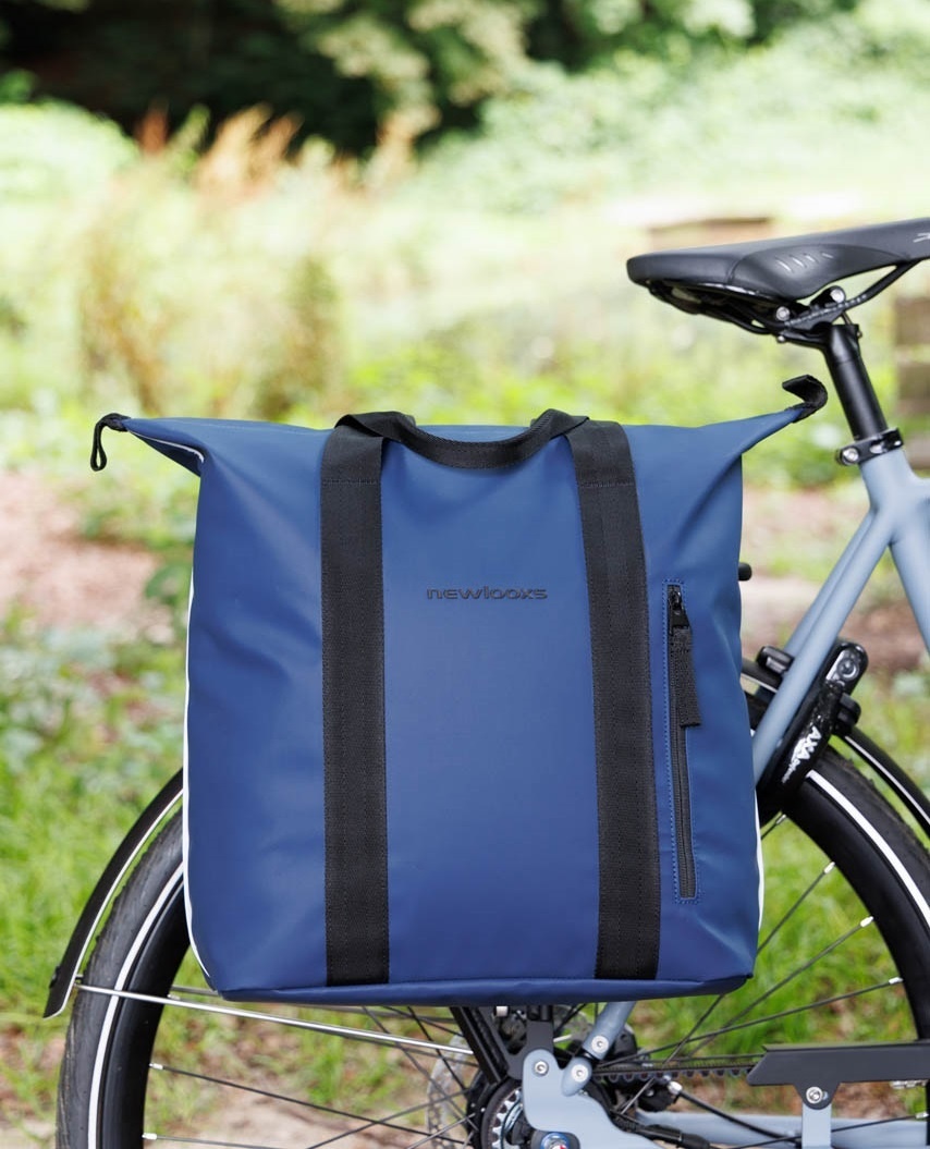Deze moderne, stoere enkele fietstas en pakaftas Odense Kota van het merk New Looxs heeft een inhoud van 24 liter. De donkerblauwe tas is gemaakt van waterafstotend 500D polyester met een TPU coating. De Kota is een handige shopper, met een ruim hoofdvak, ritsvakken, afdekbare haken en reflectie.