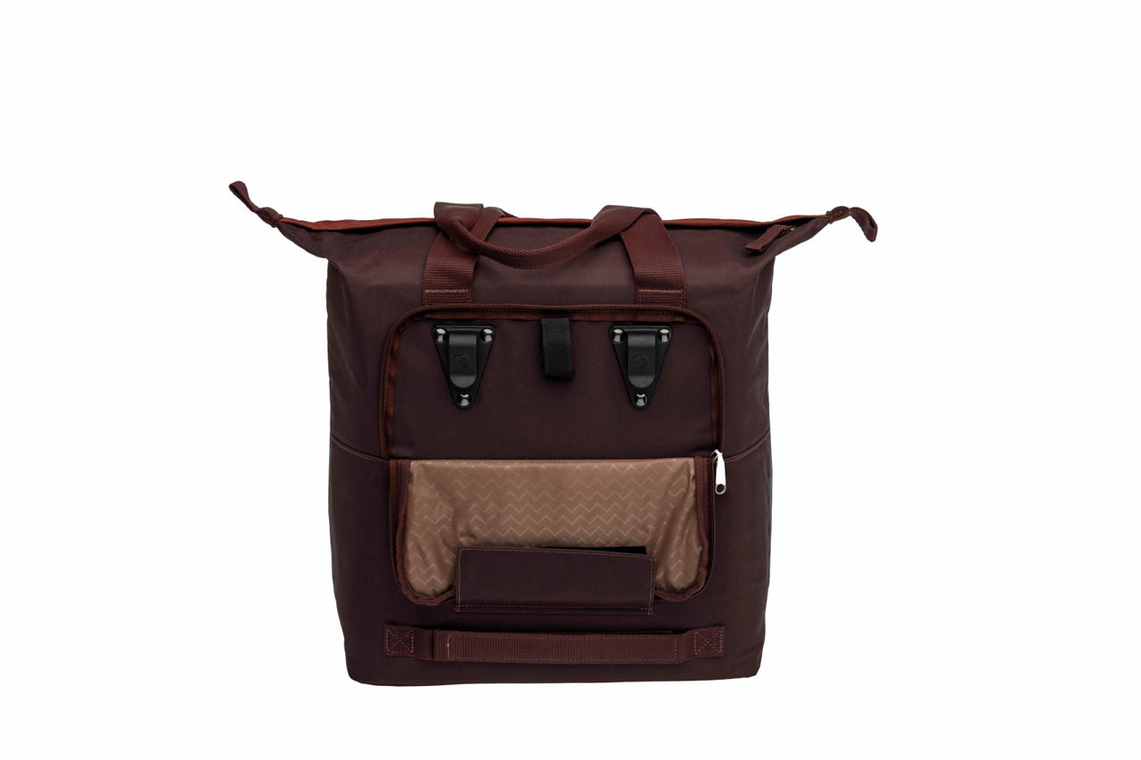 Deze trendy enkele fietstas en pakaftas Oslo Kota van het merk New Looxs heeft een inhoud van 24 liter. De tas is uitgevoerd in de frisse kleurcombinatie bordeauxrood en roest (roodbruin). De Kota is een handige shopper, met een ruim hoofdvak, ritsvakken, afdekbare haken en reflectie.