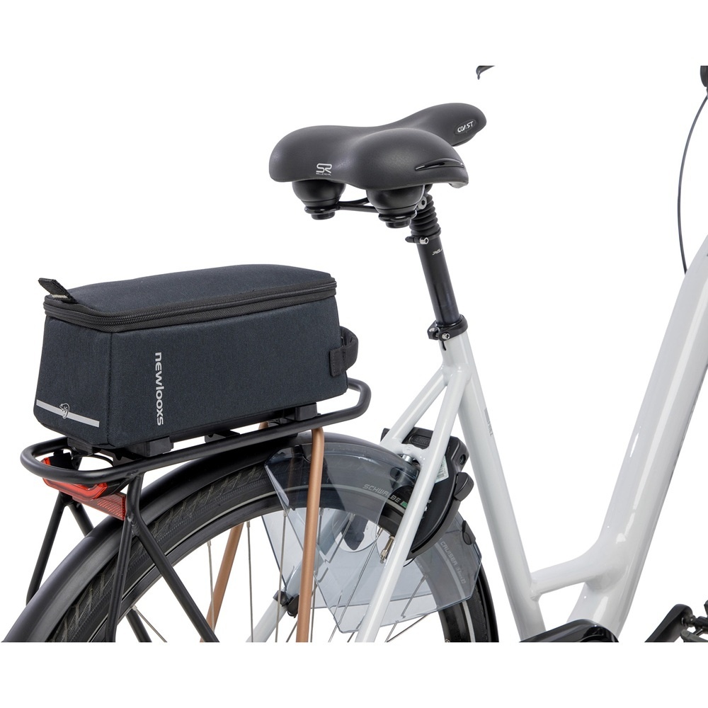 De New Looxs Trunkbag Lock is onderdeel van de New Looxs Sports-serie. Deze serie bestaat uit praktische en sportieve tassen voor op de fiets. De compacte, smalle bagagedragertas is gemaakt van waterafstotend polyester en uitgevoerd in het zwart. De trunkbag heeft een inhoud van ca. 4,5 liter en is zeer geschikt voor het op de fiets vervoeren van een kettingslot of een e-bike oplader.
