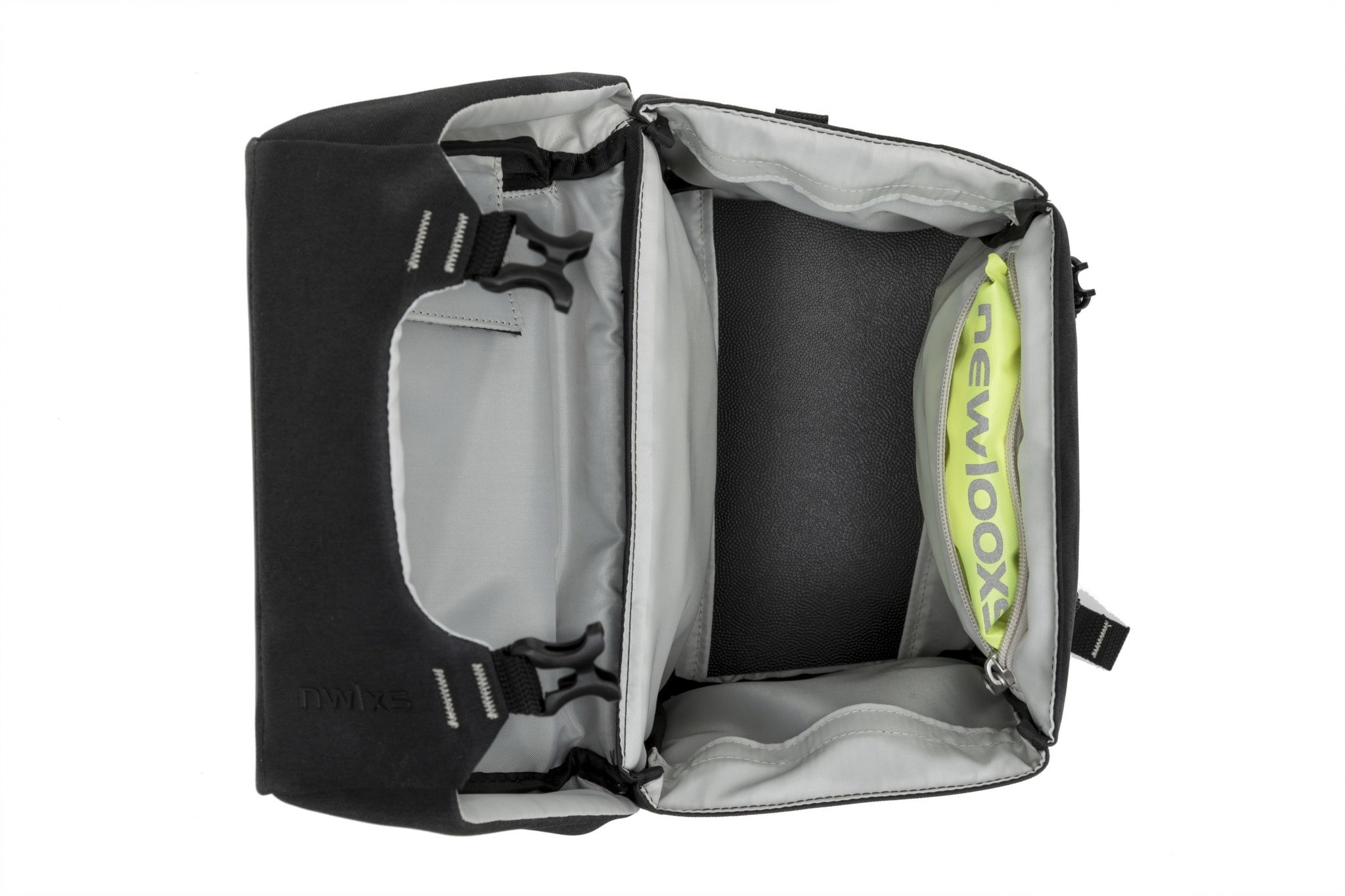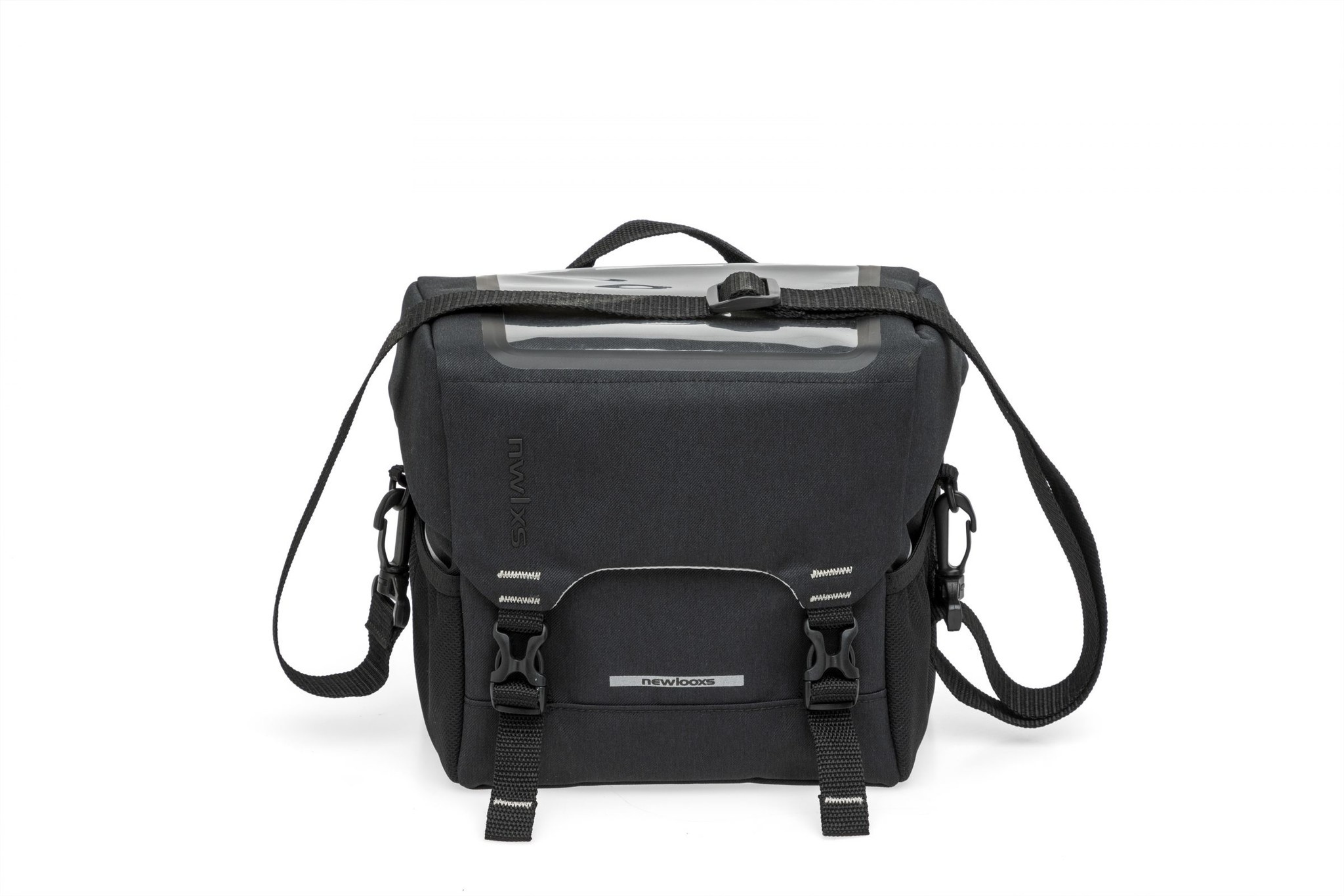 Deze stuurtas van New Looxs is uitgevoerd in sportieve stijl en past daardoor op verschillende typen fietsen. De tas is voorzien van verschillende opbergvakjes, waaronder een transparant vak aan de bovenkant van de tas. In dit vak kunt u onderweg uw smartphone (of wegenkaart) opbergen. Zo beschikt u onderweg over navigatie. Het hoofdvak sluit door middel van een flap en twee klikgespen. De tas is gemaakt van waterafstotend materiaal en wordt geleverd met een regenhoes zodat u de tas af kunt dekken wanneer het hard begint te regenen.