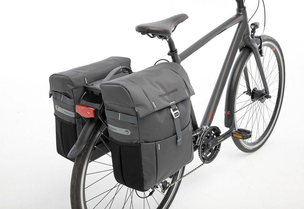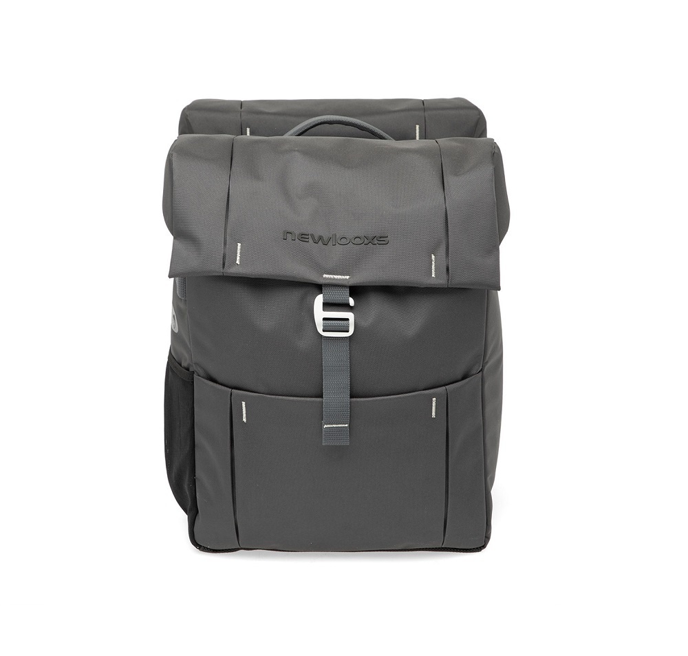 De Vigo Double Racktime van het merk New Looxs oogt sportief en biedt ruimte voor 37 liter aan spullen. De donkergrijze fietstas is gemaakt van waterafstotend polyester en is voorzien van een Snapit-adapter van Racktime.
