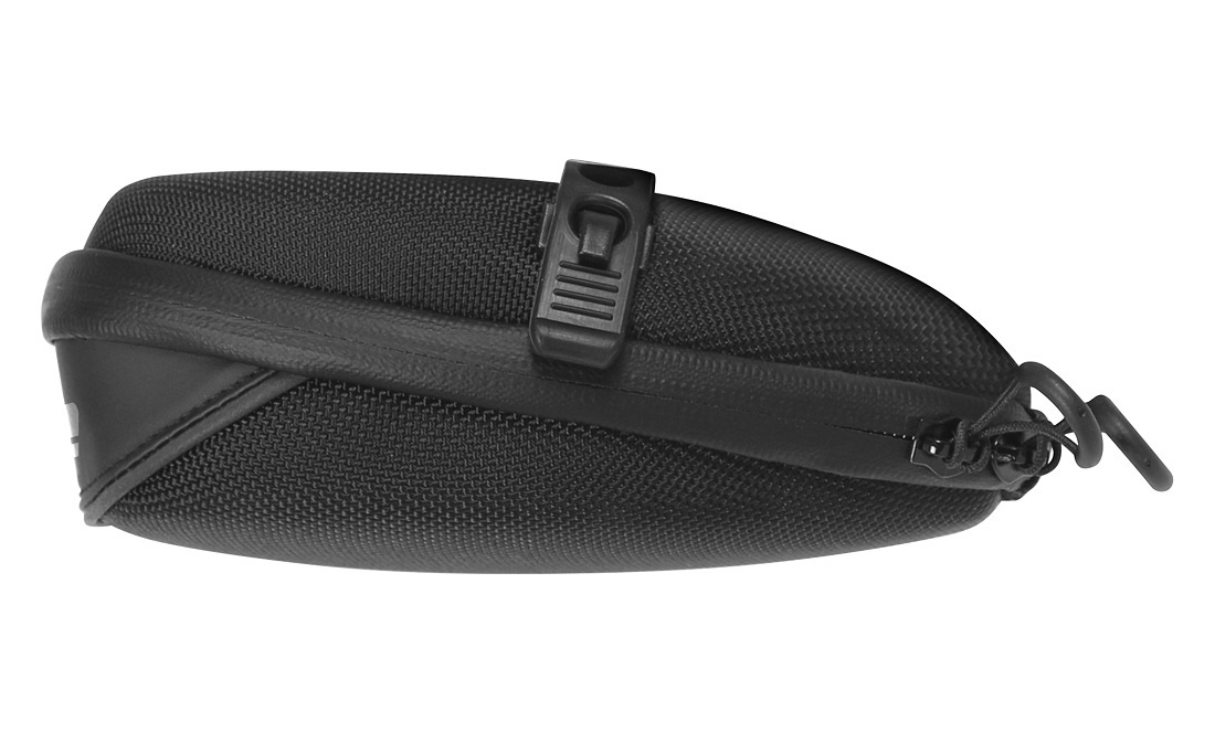 De stevige zadeltas met een verharde buitenkant heeft een waterdichte rits die rondom kan worden open geritst. Binnenin het zadeltasje vindt u twee zijvakken van gaas. Aan een zijkant zit bovendien een handige clip waar bijvoorbeeld een sleutelbos aan bevestigd kan worden. Dankzij de zijkanten van gaas kan de zadeltas wijd geopend worden, zonder dat het tasje helemaal kan openklappen.