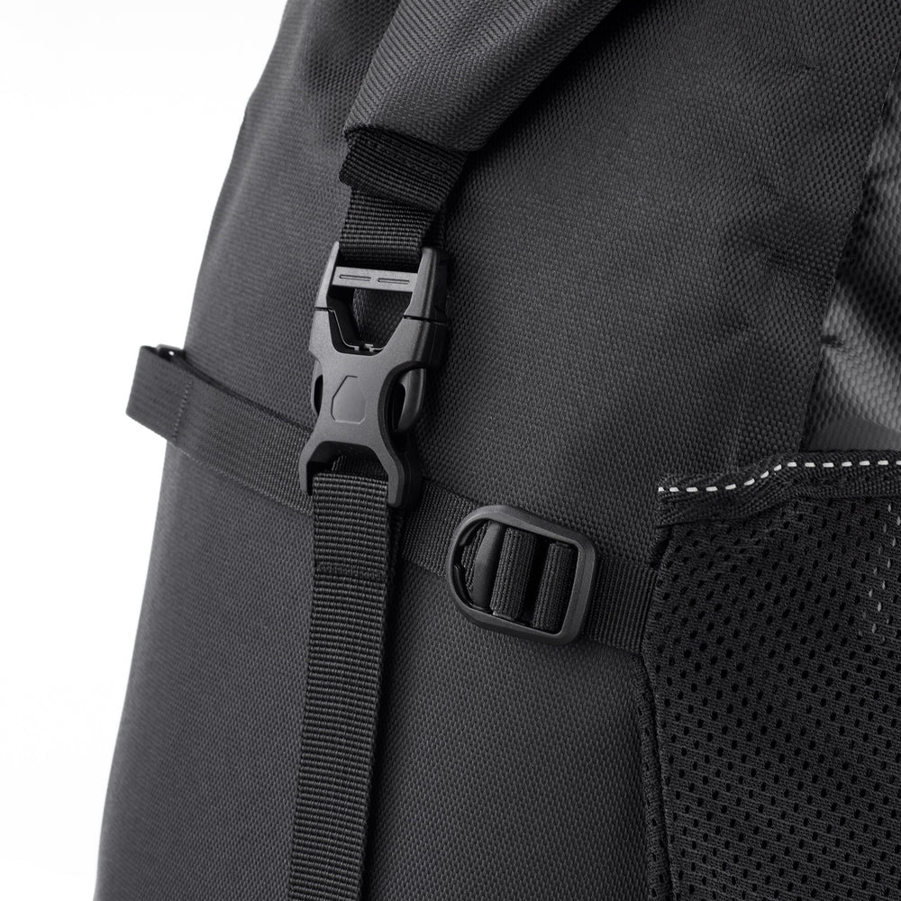 U sluit het hoofdvak van de tas met een waterbestendige rolsluiting met een gesp. Hoe minder bagage, hoe compacter u de tas dicht kunt rollen. Om de tas 100% stof- en waterdicht te maken (beschermingsgraad IP64), moet de rolsluiting ten minste 3 tot 4 keer worden opgerold.