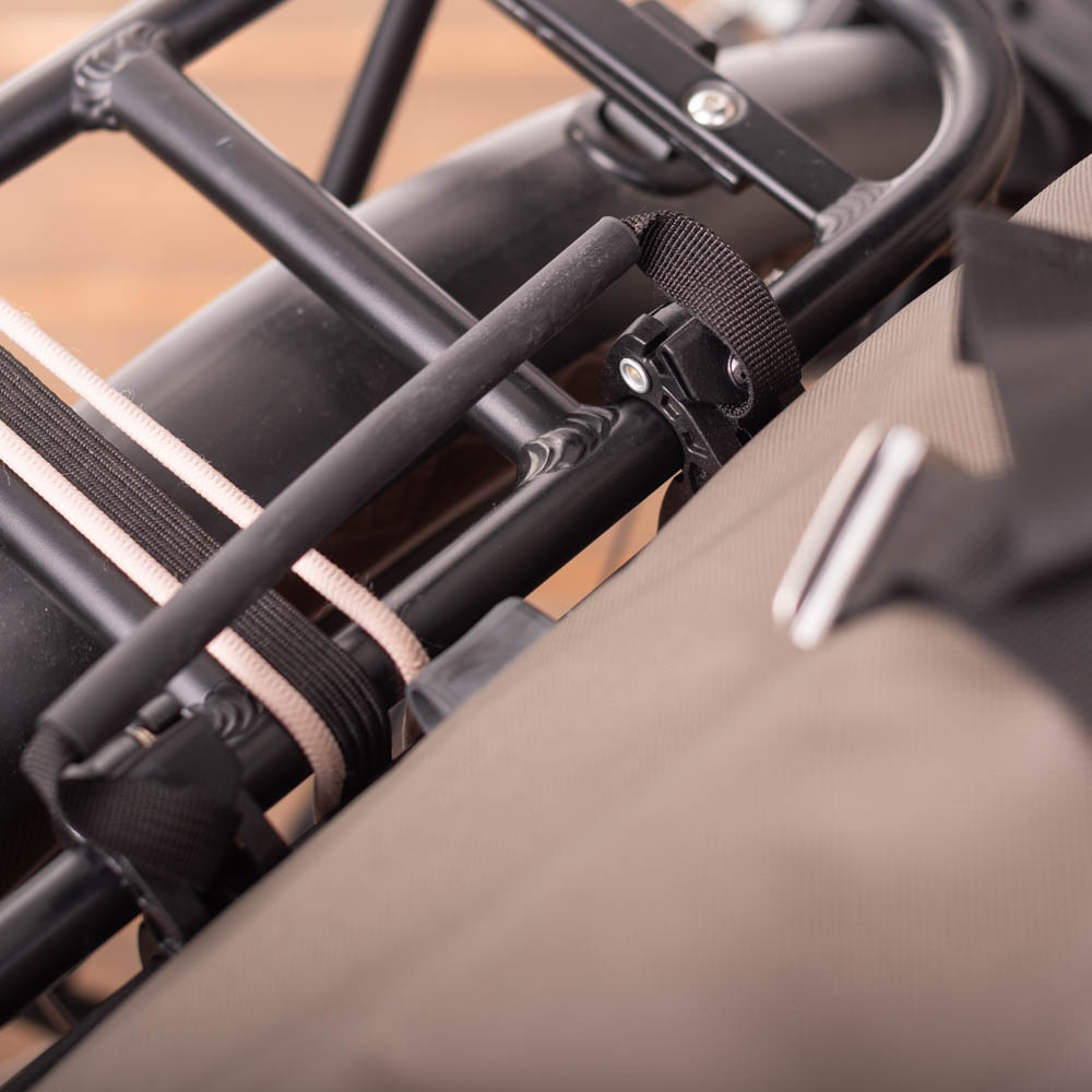 U bevestigt fietstas Vario gemakkelijk met Quick-Lock 2.1-haken aan de bagagedrager van uw fiets. Als u aan het handvat trekt dat gekoppeld is aan het kliksysteem, klikken de haken weer los van de bagagedragerbuis. De QL2.1-haken passen op bagagedragers met een buisdiameter tot 16 mm. Ook inbegrepen: anti-kras adaptertjes om de tas geschikt te maken voor buisdiameters van 8, 10 en 12 mm. Door de draaibare houderrail kan de tas zowel links als rechts aan uw fiets worden bevestigd.