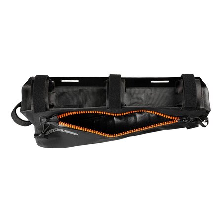 De frame-pack is aan de rechterzijde voorzien van een waterdichte TIZIP-ritssluiting. Binnenin de tas zit klittenband, wat opbollen van de tas helpt voorkomen. De tas is gemaakt van PU-gecoat nylon en is daardoor waterdicht. Let op: om de tas 100% stof- en waterdicht te maken (beschermingsgraad IP67), moet de ritssluiting volledig gesloten zijn. De frametas is in dat geval zelfs beschermd tegen korte onderdompeling onder water. Aan beide zijden van de frame-pack vindt u een reflecterend logo, voor extra zichtbaarheid in het verkeer.