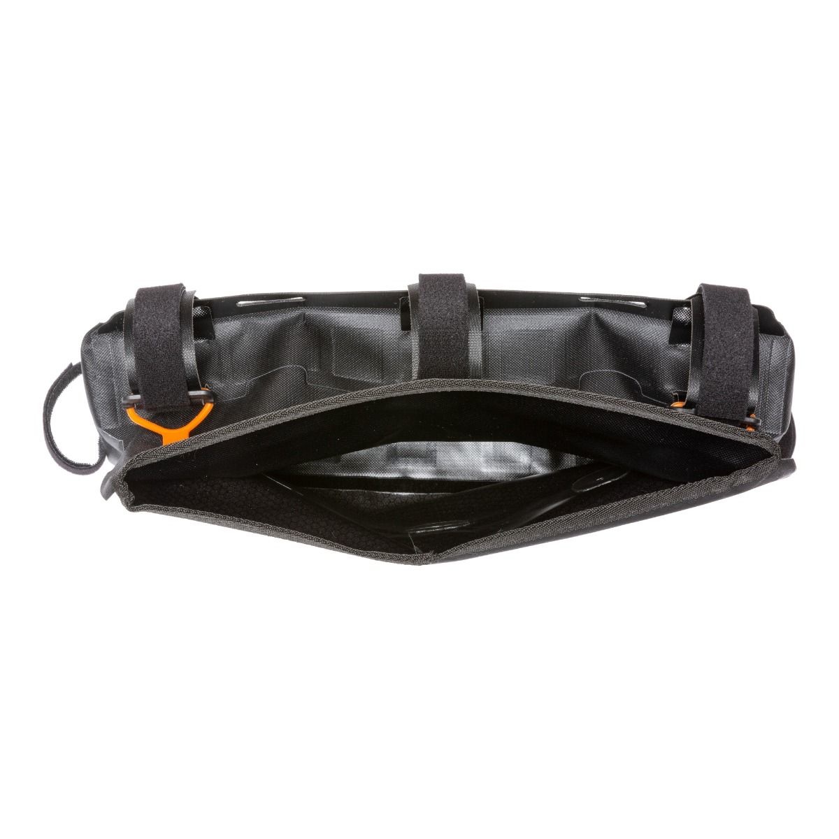 De bovenbuistas heeft een waterdichte rolsluiting die afgesloten wordt met drie oranje siliconen ringen. Dankzij de grote opening van de tas kan deze gemakkelijk ingepakt worden. Om de tas 100% stof- en waterdicht te maken (beschermingsgraad IP64), moet de rolsluiting ten minste 3 tot 4 keer worden opgerold. De Frame-Pack is aan beide zijden voorzien van een reflecterend logo.