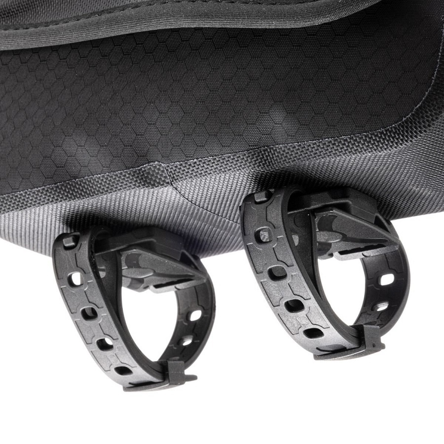 Met de bijgeleverde geperforeerde rubberen bandjes bevestigt u de Fuel-Pack eenvoudig op de bovenbuis van uw fiets. Als er al schroefgaten in de bovenbuis zitten, kunt u de tas ook direct vastschroeven op de framebuis. De rubberen bandjes kunt u vervolgens gebruiken om bijvoorbeeld een extra bidonhouder aan de onderbuis te bevestigen. Als de schroefgaten niet op de juiste plek zitten, kan de montagepositie van de Fuel-Pack met een los te verkrijgen Offset-Plate verplaatst worden. De tas is ook geschikt voor bevestiging aan carbon frames.