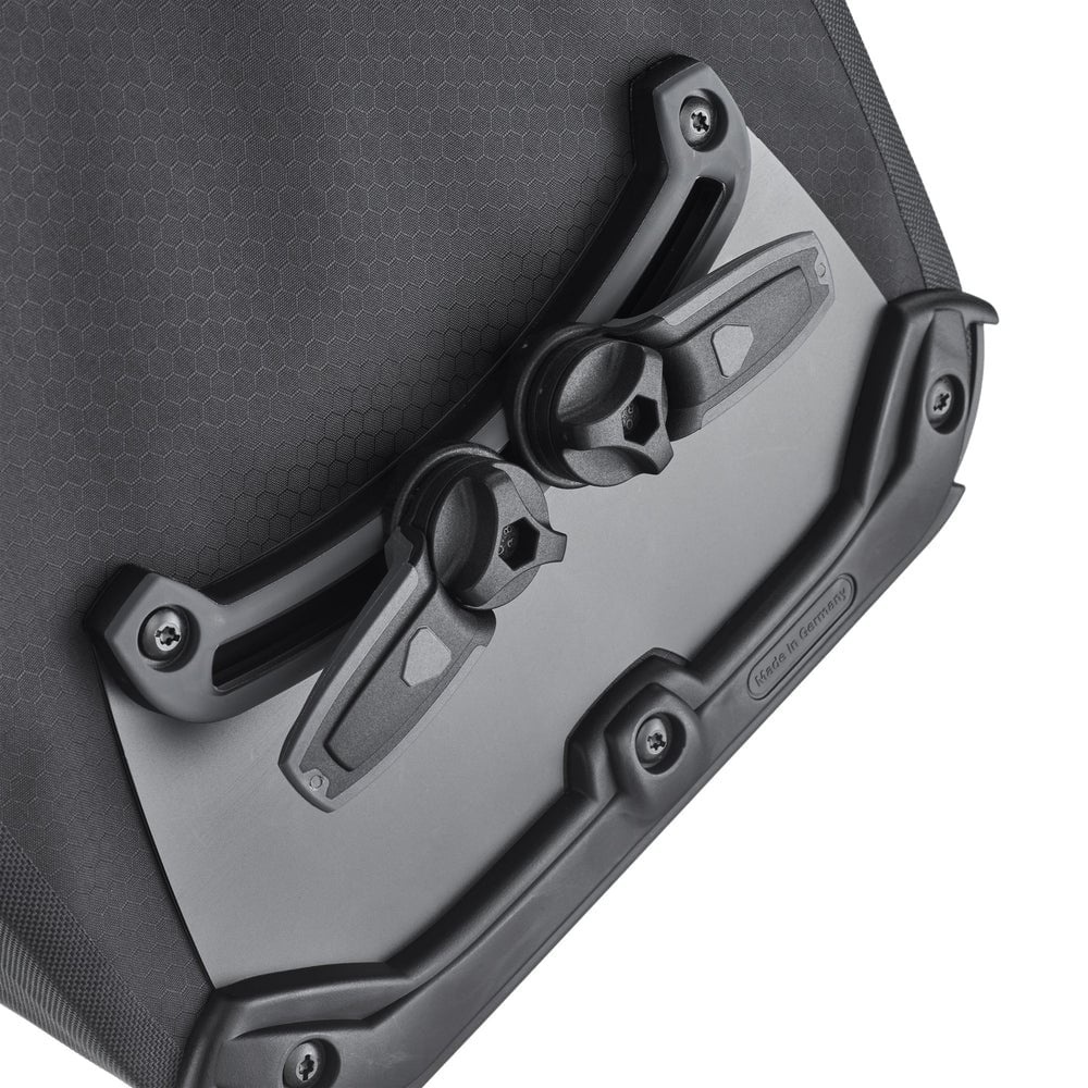 U bevestigt de Gravel-Pack gemakkelijk met de nieuwe Quick-Lock 2.2-haken aan de bagagedrager van uw fiets. Als u aan het handvat trekt dat gekoppeld is aan het kliksysteem, klikken de anti-kras haken weer los van de bagagedragerbuis. De QL2.2-haken passen op bagagedragers met een buisdiameter van 8 tot 16 mm. De grootte van de haken kan zonder gereedschap individueel worden aangepast, om ze passend te maken voor dragers met een buisdiameter van 10, 12, 14 en 16 mm. Losse inserts zijn dus niet meer nodig. Door de draaibare houderrails onderaan kan de tas zowel links als rechts aan uw fiets worden bevestigd. Klik hier voor meer informatie over het Quick-Lock-systeem van Ortlieb.