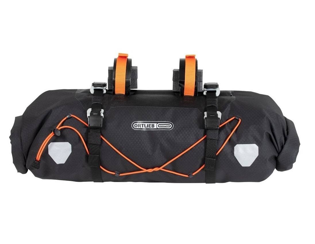 De Handlebar-Pack is voorzien van compressiebanden en een ontluchtingsventiel. Deze opties helpen het volume van de tas zo compact mogelijk te houden. U kunt desgewenst ook andere Ortlieb-accessoires (zoals de Accessory-Pack) aan de compressiebanden bevestigen. U kunt de accessoires ook aan de vier haken op de tas vastmaken. Het elastische oranje koord op de voorkant biedt een extra opbergmogelijkheid. Voor extra veiligheid in het verkeer is de tas aan de voorzijde voorzien van twee krachtige 3M-reflectoren.