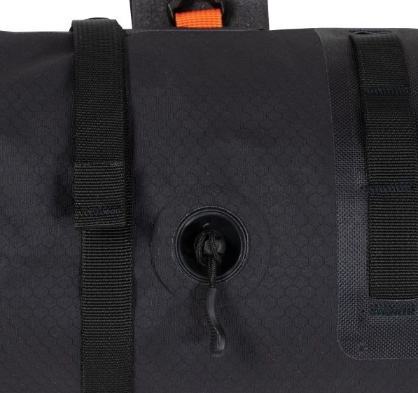 De stuurtas is gemaakt van waterdicht materiaal en is aan beide zijden voorzien van een waterbestendige rolsluiting met klikgespen. Let op: om de tas 100% stof- en waterdicht te maken (beschermingsgraad IP64), moeten deze rolsluitingen ten minste 3 tot 4 keer worden opgerold.