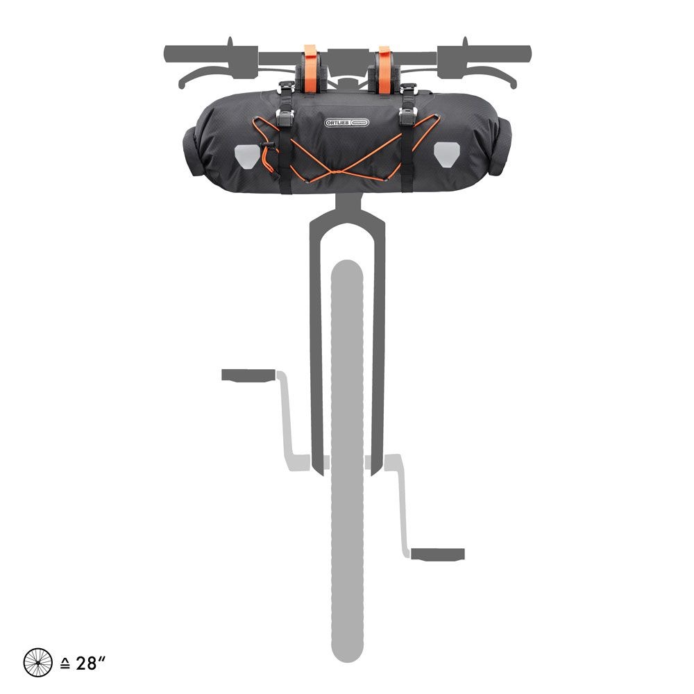 De Handlebar-Pack is onderdeel van de bikepacking-serie van kwaliteitsmerk Ortlieb. De matzwarte stuurtas is gemaakt van robuust, maar lichtgewicht PU-gecoat nylon en heeft een inhoud van 15 liter. De stuurtas is voorzien van waterbestendige rolsluitingen aan beide zijden, compressiebanden, afstandhouders en reflectie. De Handlebar-Pack is ideaal tijdens een meerdaagse fietstocht, voor bijvoorbeeld het opbergen van kleding, een slaapzak en/of een slaapmatje.