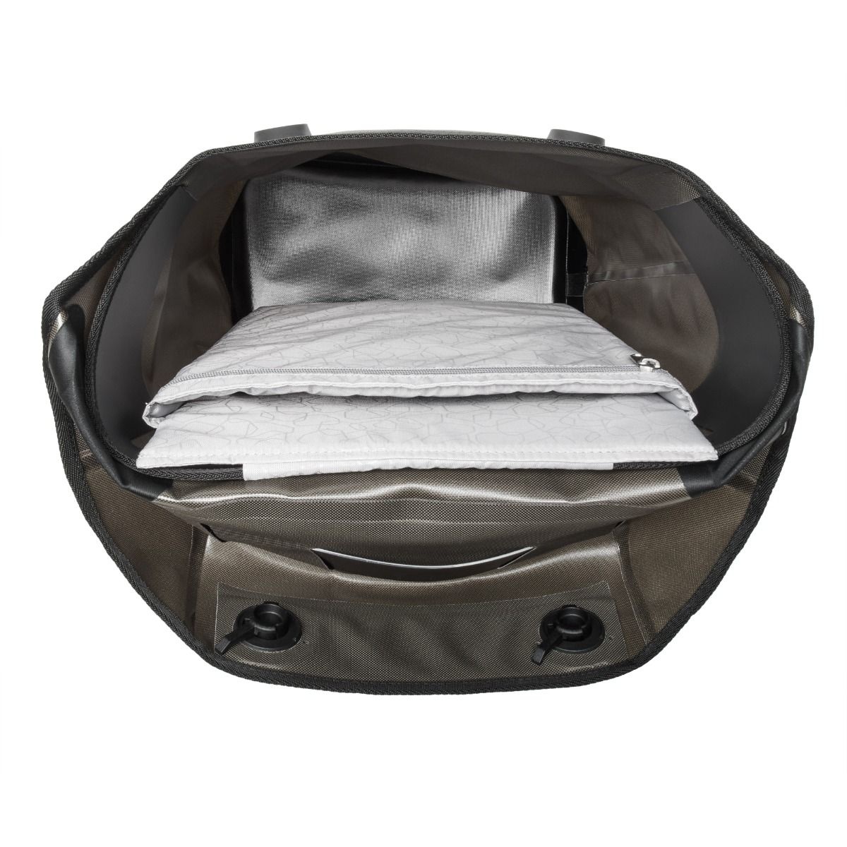U sluit het hoofdvak van de tas met een waterbestendige, magnetische dekselsluiting. Als de klep goed gesloten is, heeft de tas beschermingsgraad IP53 tegen stof en spatwater. Het reflecterende logo voorop zorgt voor extra zichtbaarheid in het donker.
