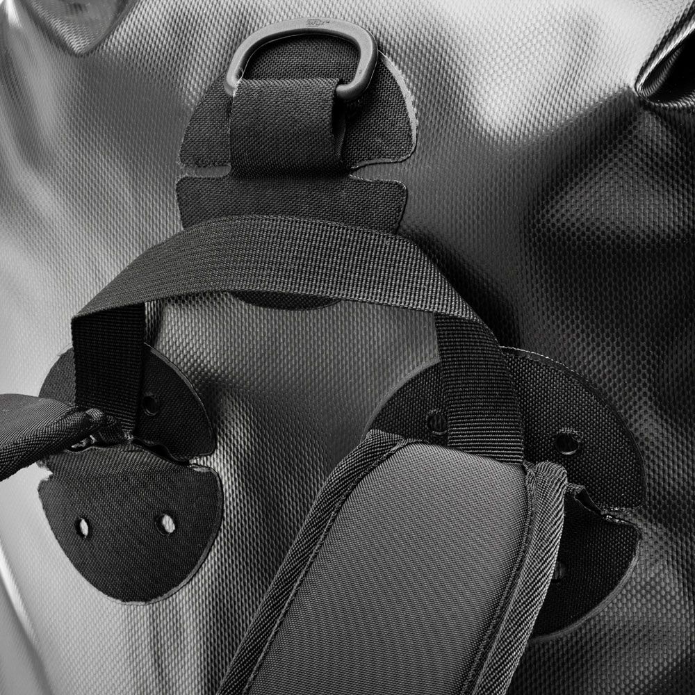 Deze robuuste, grote rugzak van het Duitse kwaliteitsmerk Ortlieb is licht van gewicht, maar oersterk en waterdicht. De zwarte tas is gemaakt van duurzaam PVC-gecoat polyester en voorzien van een rolsluiting en ergonomische schouderbanden. Het is een ideale rugzak voor outdoor activiteiten en avontuurlijke reizen. De tas kan ook worden gebruikt als waterdichte beschermhoes voor bagage.