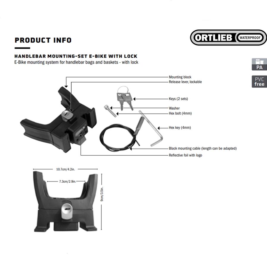 Ortlieb Stuurhouder e-bike E207 met slot & Montageset
