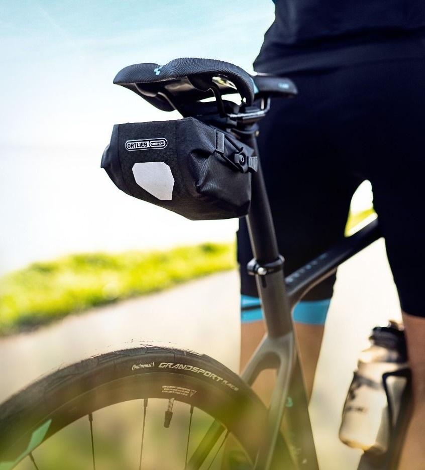 Deze compacte Saddle-Bag Micro Two van kwaliteitsmerk Ortlieb is een waterdichte zadeltas met een inhoud van 0,5 liter. Het matzwarte tasje is gemaakt van lichtgewicht PU-gecoat nylon, en is voorzien van een waterproof rolsluiting, reflectie en een eenvoudig bevestigingssysteem. De ultralichte Micro Two is een ideale zadeltas voor mountainbikes en racefietsen, voor het opbergen van bijvoorbeeld een reservebinnenband, klein gereedschap of een EHBO-setje.