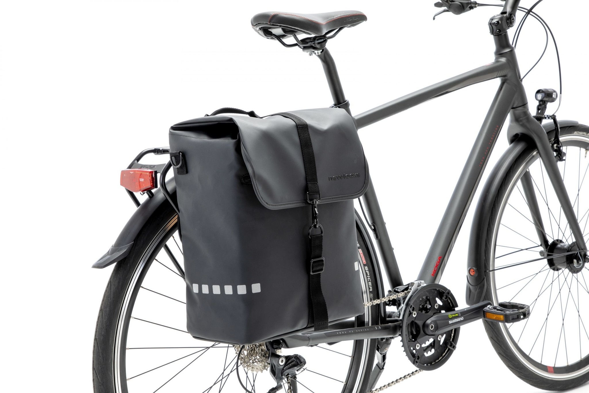 - Deze haken zijn netjes weggewerkt; zo ziet de tas, eenmaal van de achterdrager af, eruit als een normale enkele fietstas.