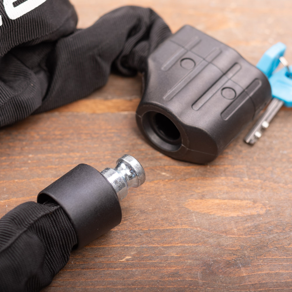 Standaard wordt dit kettingslot in de kleuren zwart/blauw geleverd en met een lengte van 120 centimeter. Tegen een kleine meerprijs is dit slot ook verkrijgbaar met een lengte van 150 cm.