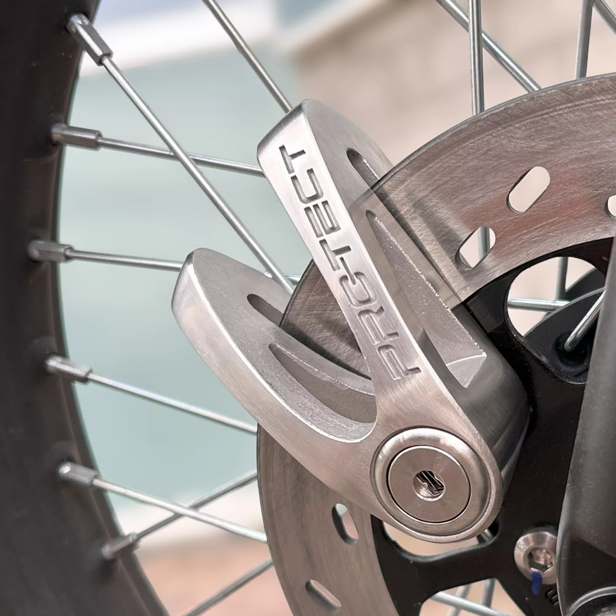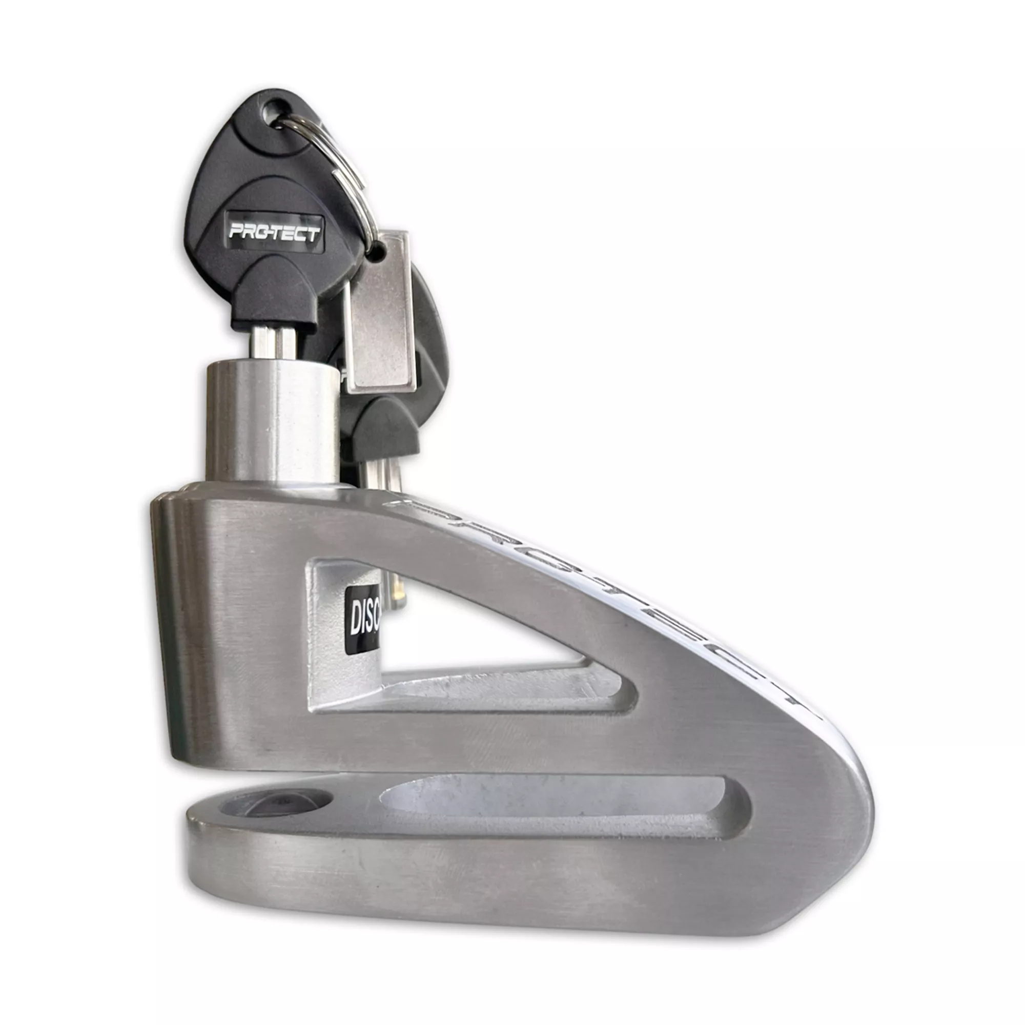 De roestvrijstalen Pro-tect Disq Pro is een sterk schijfremslot in een compact formaat, met een V-vormig ontwerp. Het slot is ideaal voor onderweg. Met dit ART-4 schijfremslot beveiligt u uw scooter of motor snel en gemakkelijk.