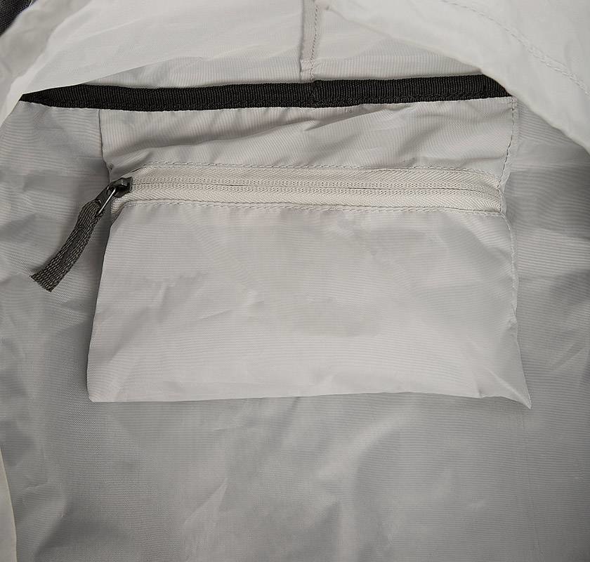 - Aan beide zijden een geïntegreerde regenhoes met trekkoordsluiting, plus kapsluiting
