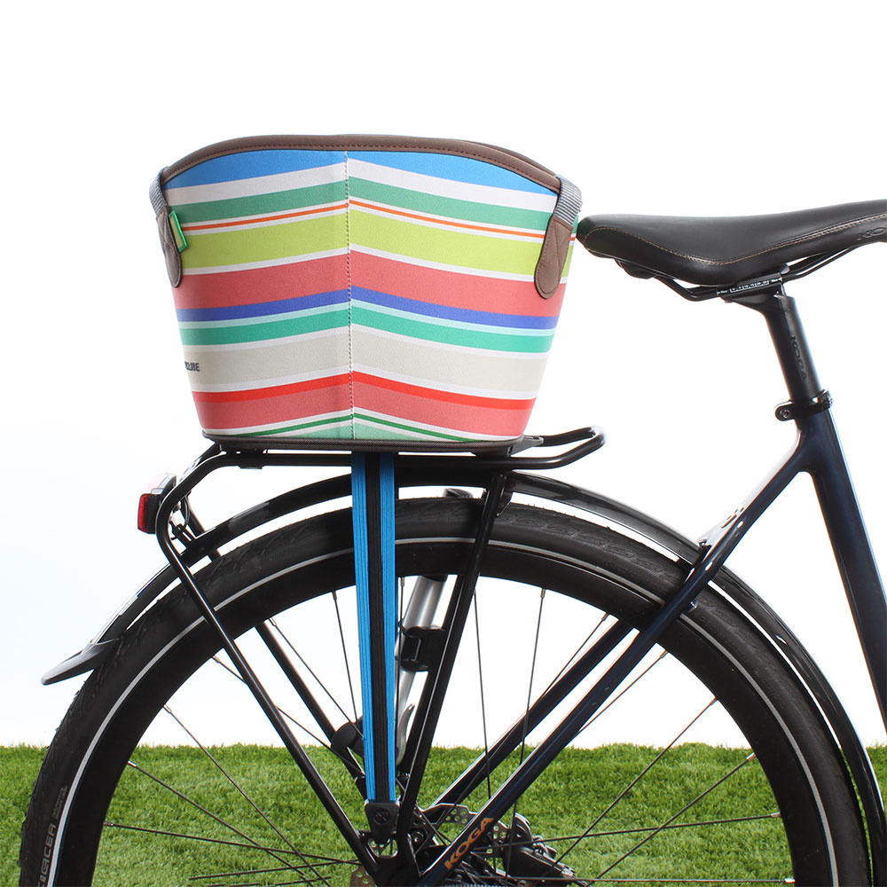 De fietsmand/fietstas Agnetha weegt bijna niets en u kunt er lekker veel in kwijt. Het is een praktische en leuke boodschappentas met een inhoud van 15 liter. De tas in de uitvoering 'Sweet Candy' heeft verschillende banen/strepen in frisse kleuren. U bevestigt de tas gemakkelijk met de Snap-it 2.0-adapter op een Racktime 2.0-bagagedrager.