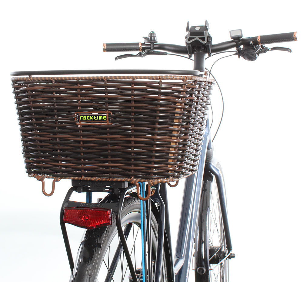 En een mooie ook! De afbeeldingen van de Willow van Racktime laten het al zien. Het is een donkerbruin gekleurde fietsmand voor op de bagagedrager, met enigszins een wilgentak-uiterlijk. De bovenrand is ietwat gemêleerd voor een fijnzinnig design-effect. De onderzijde is van fijnmazig staal. Het hengsel, dat naar beide zijden kan inklappen, voelt solide aan en heeft bovendien een 'sterk-softe' greep. Aan de hand daarvan vervoert u hiermee tot 20 liter aan boodschappen en andere spullen, tot een ruim maximum van 10 kilogram draaggewicht.