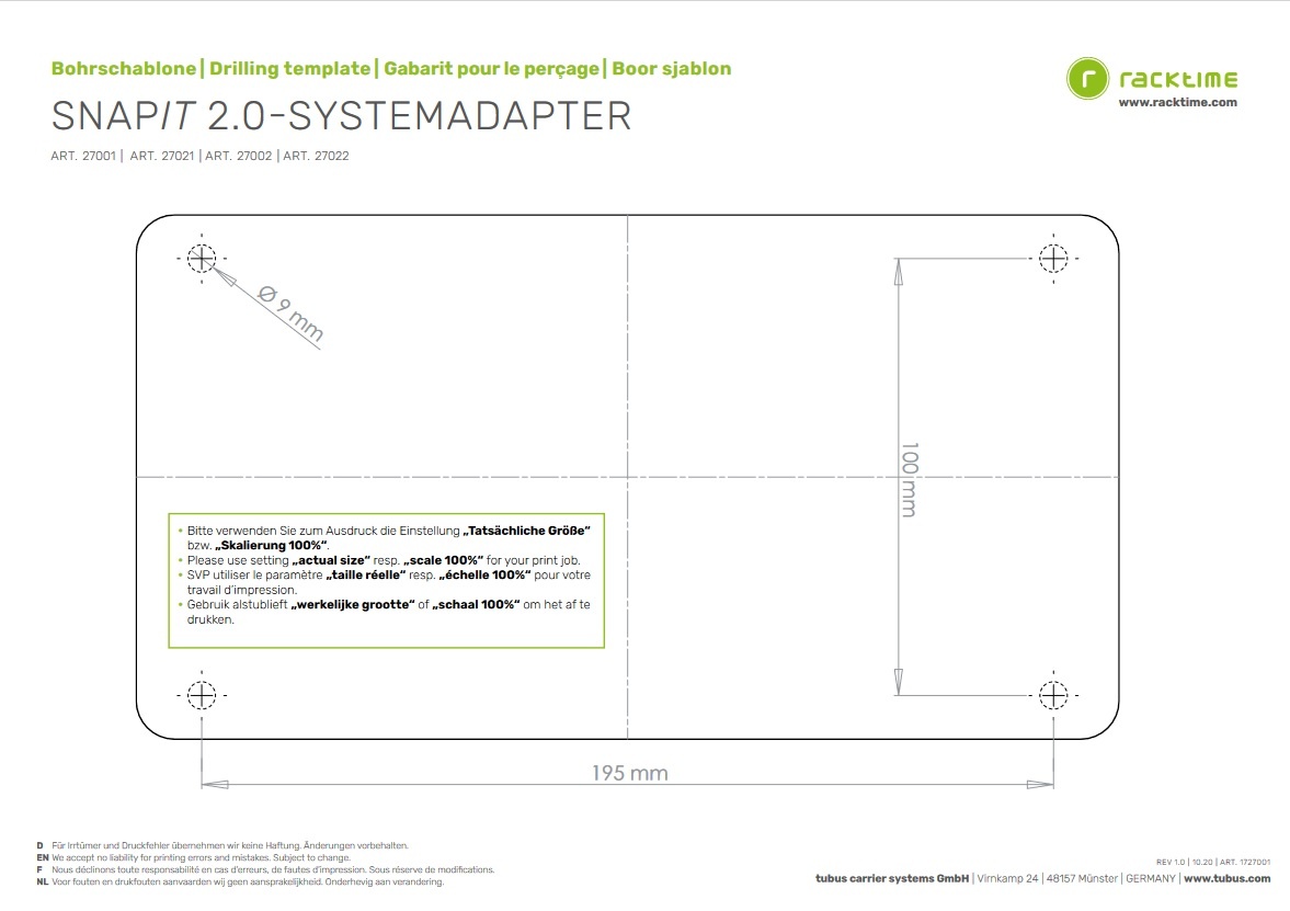 De Snap-it 2.0 adapter is verkrijgbaar in verschillende varianten: met of zonder voetjes, en met of zonder slot. De adapters met voetjes zijn breder dan de varianten zonder voet.