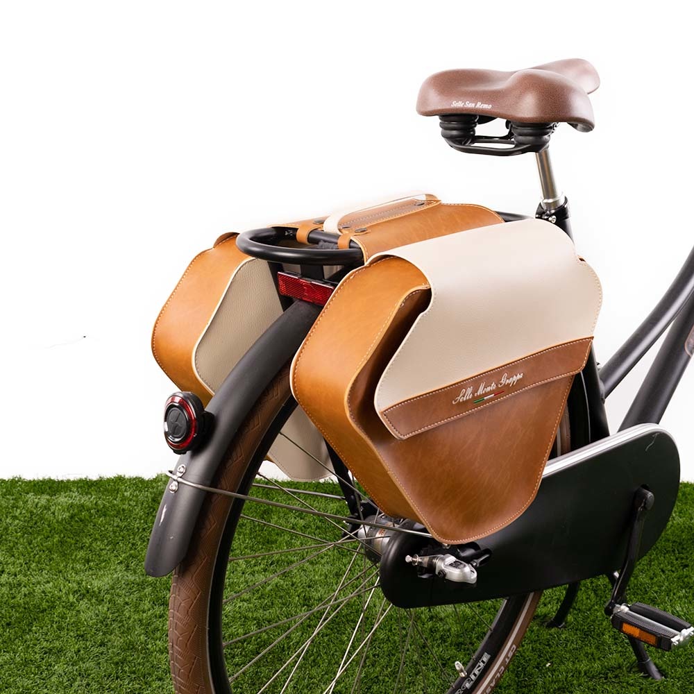 U kunt 33 liter aan spullen meenemen in de Bauletto Fashion. De Selle Monte Grappa Bauletto Fashion fietstas is verkrijgbaar in de volgende kleuren: honey/crème, donkerbruin/crème, crème/zwart en zwart/donkerbruin. In dezelfde serie leveren wij ook de bijpassende zadeltassen. Tevens kunnen wij ook de bijpassende zadels uit deze serie leveren. Informeer gerust! Bekijk ook eens de normale Bauletto-uitvoering.